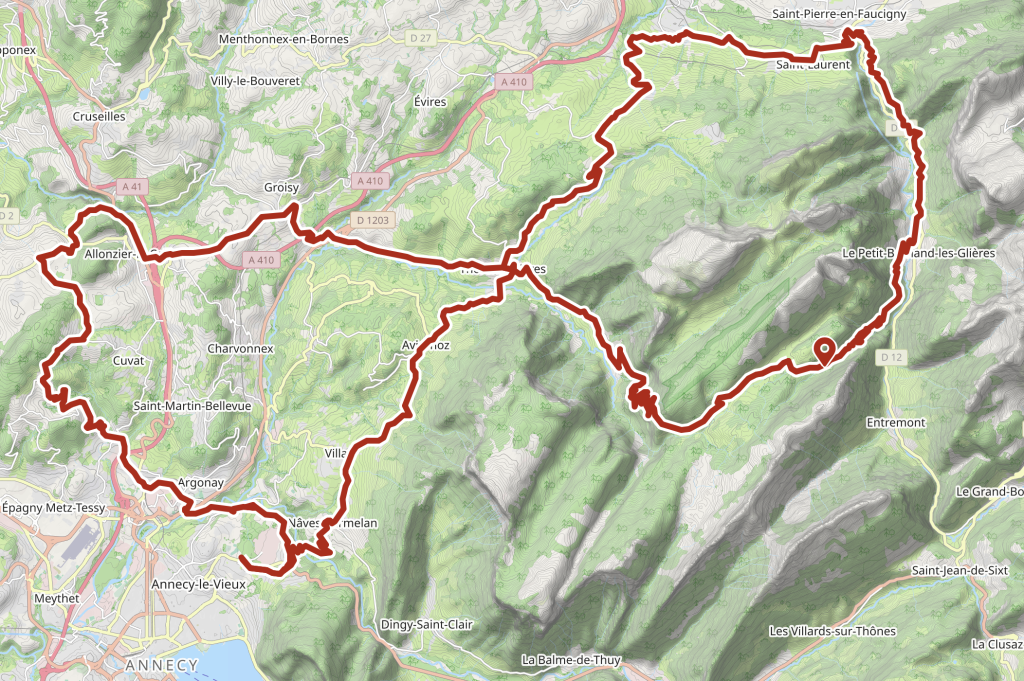 Au départ de l’Espace Rencontre d’Annecy-le-Vieux , vous partez en direction de la rive EST du splendide Lac d’Annecy, puis gravissez le Col de Bluffy (point de vue sur le magnifique château de Menthon-Saint-Bernard à votre droite), ensuite une belle descente vous conduit dans  la vallée de Thônes. Un arrêt ravitaillement se fera au charmant lac de Thuy avant d’atteindre la capitale du Reblochon.